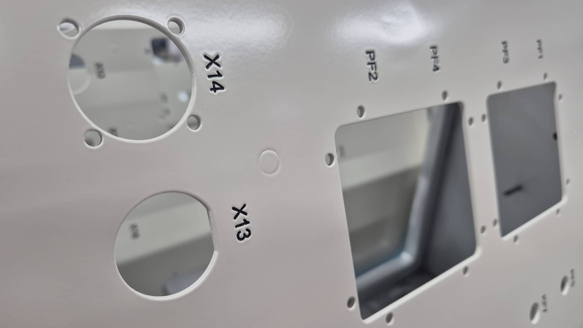 Vyrábíme specializované štítky pro elektronické zařízení, které odolávají UV záření a mechanickému i chemickému poškození. Dokážeme vyrobit značení s požadavkem na protlačení, průhledovými okénky pro display nebo LED podsvícení. U samolepícího provedení můžeme štítky podlepit v celé ploše nebo s přesným předřezem a vynecháním samolepící vrstvy v místech průhledových okének a tlačítek. Díky našim technologiím dokážeme zaručit stálou barevnost napříč objednávkami a materiály.